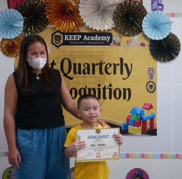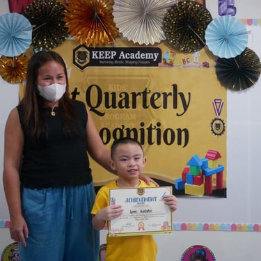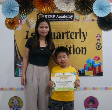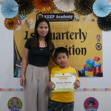 "Good day, everyone! I am Shallymar, the mother of Vonn Nathaniel. I am honored to have enrolled my son Vonn here at KEEP Academy Catalunan. I just want to say a massive thank you for everything you’ve taught my son because he has improved so much—from a shy little boy to a confident one. You’ve empowered my son with lessons and confidence that he will carry for the rest of his life. The school and teachers have a passion for their work, and it is truly refreshing to see. To all parents out there, don’t hesitate to enroll your child here at KEEP Academy Catalunan Pequeño. Your child’s future begins here. Have a nice day, everyone! Rest assured, dili jud ta magmahay, mga Ma’am."